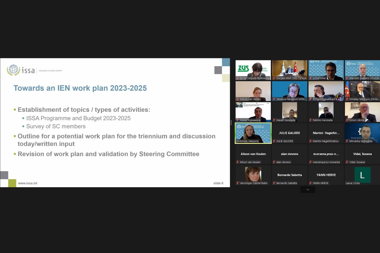Video konferans yöntemiyle gerçekleşen toplantıya, ISSA yöneticileri ve ISSA Avrupa Bölgesi’nden Komite üyesi 10 farklı ülkenin temsilcileri katıldı.