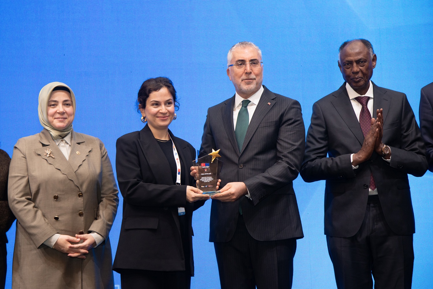 Türkiye Yüzyılı idealini beşeri sermaye gücüyle gerçekleştireceklerine yürekten inandıklarına vurgu yapan Bakan Işıkhan, “Kalkınma hamlemizin amacı, yediden yetmişe, milletimizin her bir ferdinin, bu önemli vizyona destek verebileceği bir refah ortamını oluşturmaktır. Bizi, sürdürülebilir kalkınma hedeflerimize taşıyacak olan bu refah ortamı ise; nüfusumuzun yarısını oluşturan ve toplumumuzun kurucu unsuru olan kadınların kıymetli destekleriyle gerçekleşebilir. Bu kapsamda, kadınların üretime tam ve etkin katılımı, tam bağımsız yerli ve milli kalkınma hamlelerimizde kilit bir rol oynamaktadır. Öte yandan ülkemizin geleceği adına beka meselesi olarak gördüğümüz aile kurumunun, sağlam temeller üzerinde yükselebilmesi ve kimsenin çalışma hayatında zorluklara maruz kalmaması için tedbirlere devam etmekteyiz.” ifadelerini kullandı.