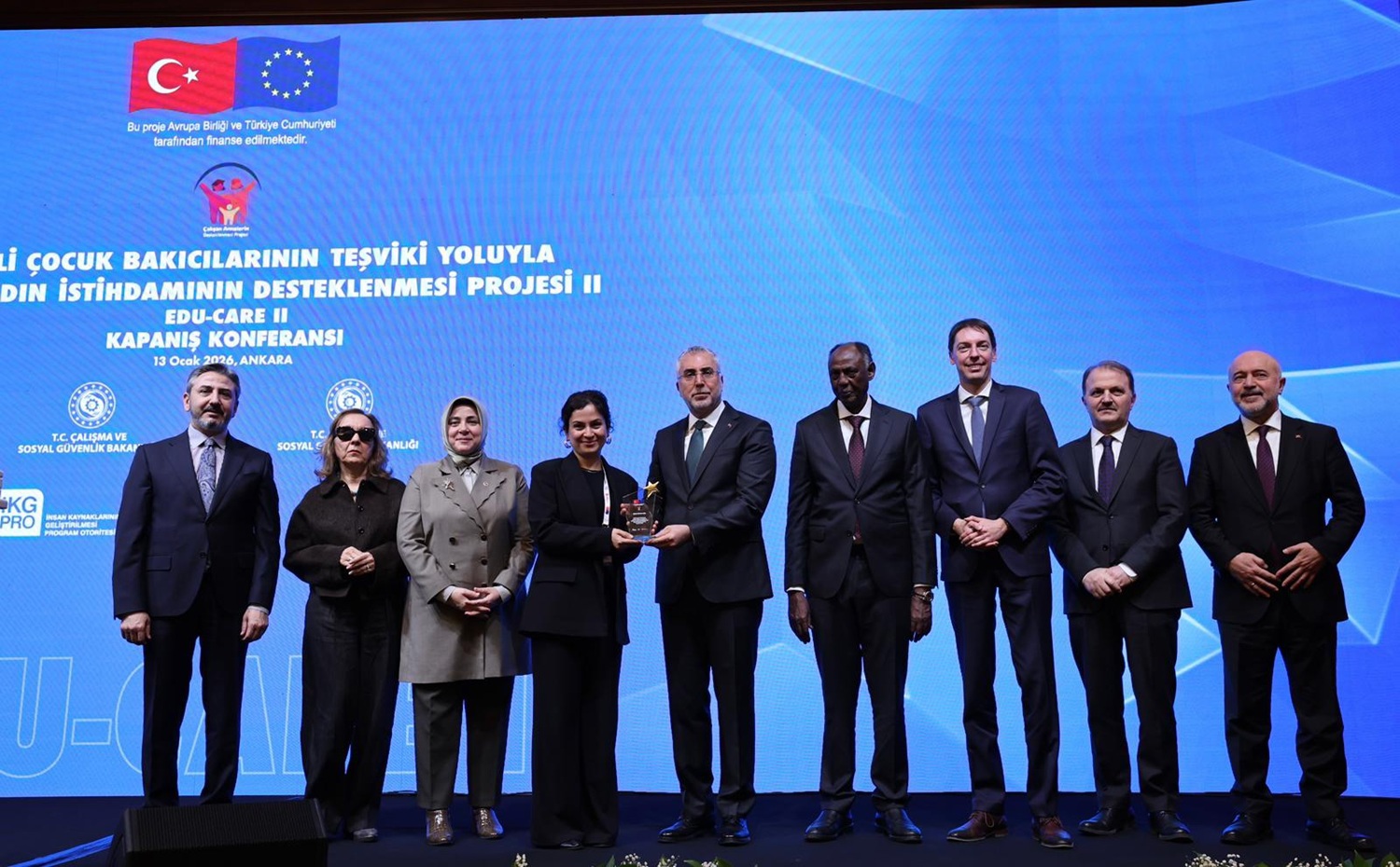 Işıkhan, kapanışı gerçekleştirilen bu projenin, AB Delegasyonu ile gelecekteki iş birlikleri için de güçlü bir referans olduğuna işaret ederek, “Türkiye, AB adaylık sürecinde sosyal fasıllardaki standartları yakalama ve hatta bazı alanlarda bu standartların üzerine çıkma kararlılığını sürdürmektedir. Buradan, projenin finansmanına ve uygulanmasına katkı sunan Avrupa Birliği yetkililerine yapıcı iş birlikleri için teşekkür ediyorum. EDU-CARE, bizim için sadece başarılı bir proje değil, aynı zamanda kazanılmış bir tecrübedir. Bu projeden elde ettiğimiz kazanımları; 12. Kalkınma Planımız ve Orta Vadeli Program hedeflerimizle uyumlu bir şekilde ele alıyor, bunu geleceğe ait ulusal politikalarımızı belirmemize yardımcı olacak önemli bir referans kaynağı olarak değerlendiriyoruz.” şeklinde konuştu.